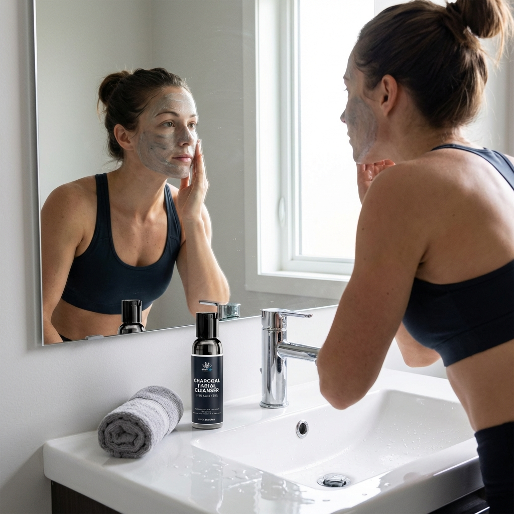 Refresh and purify your face with our Paraben-Free Charcoal Facial Cleanser—a gentle, daily cleanser designed to lift away dirt, makeup, and sweat without drying your skin. Powered by activated charcoal and soothing aloe, it’s the perfect reset after long days or sweaty workouts.